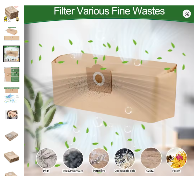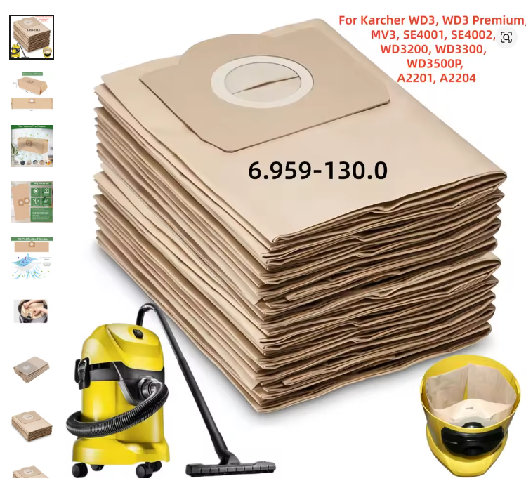 3. MLitem: Kit 3 Sacos Descartáveis Aspirador Pó Wap Gtw 10  – bought for test.  See notes below.