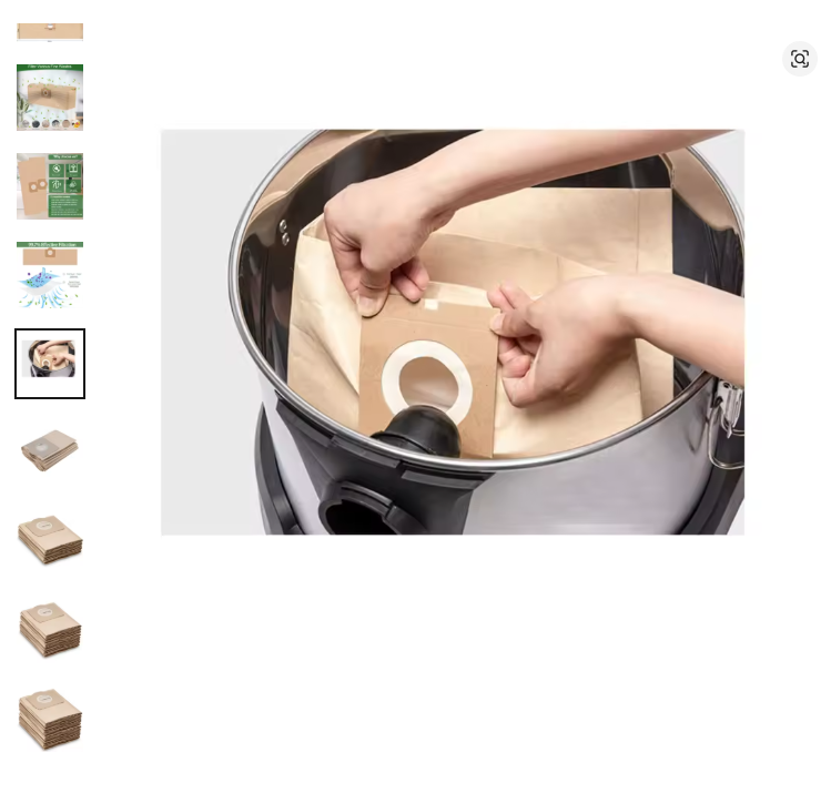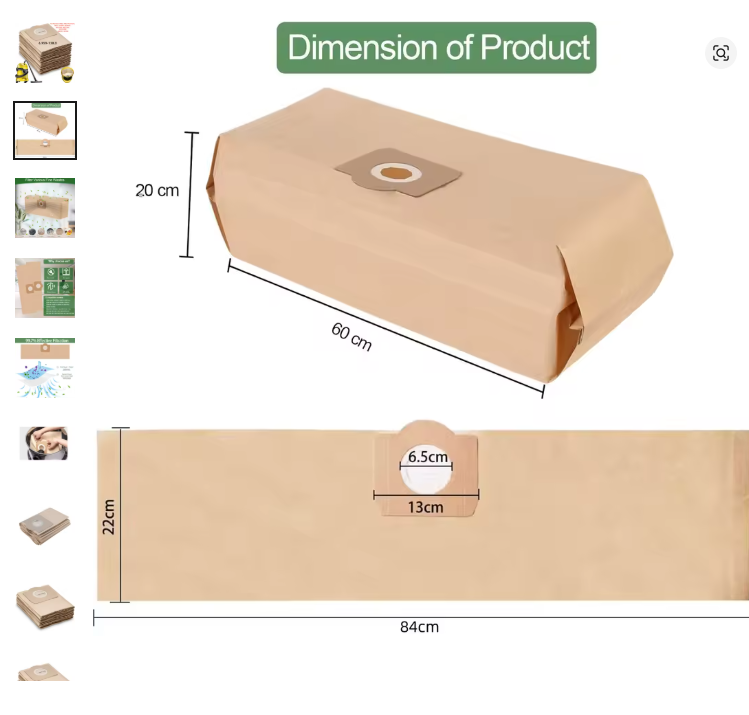 • Sack will not rest on the bottom of the 12L vacuum tank.  Shorter than original – does not rest on bottom of tank