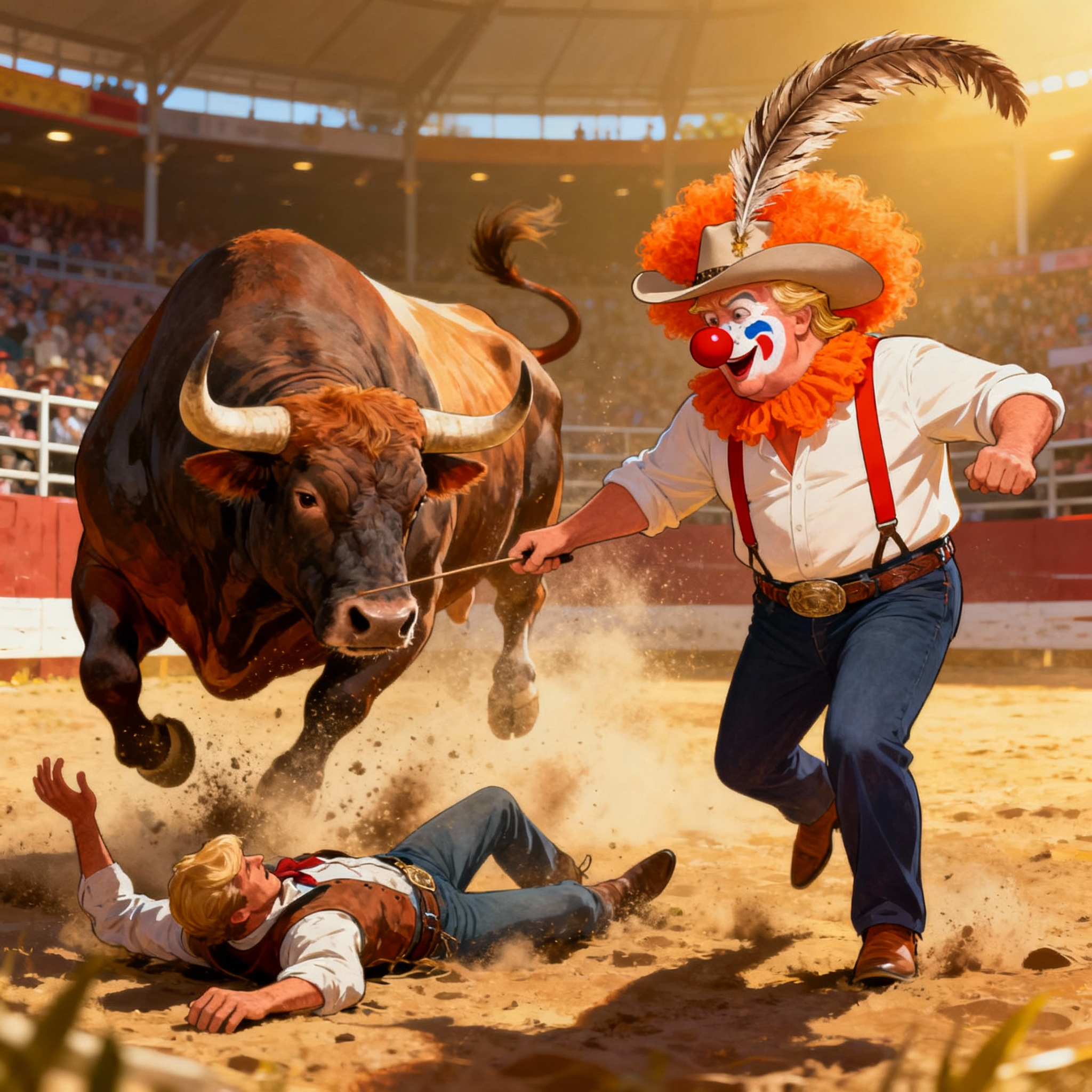 Meme base. Is he president or is he just the rodeo clown distracting everyone?